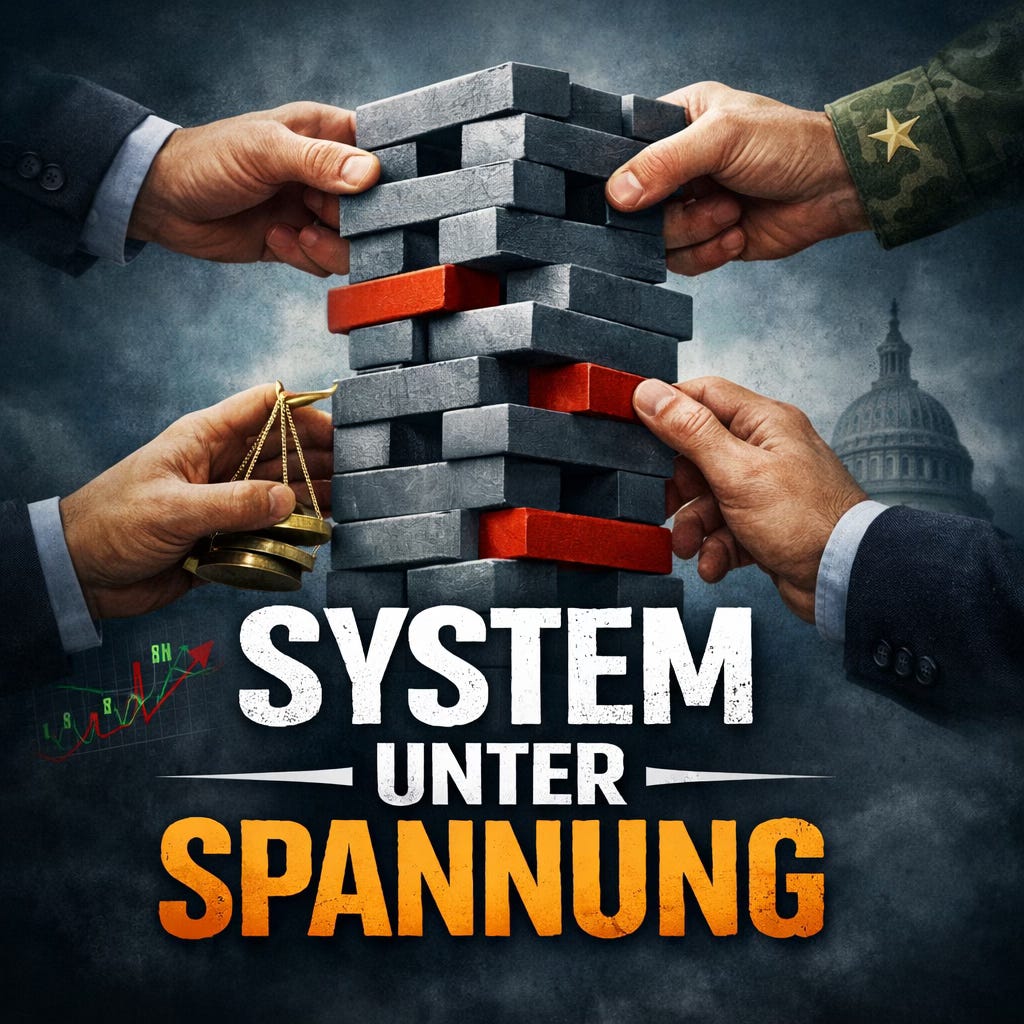 Wir befinden uns nicht mehr in einer Phase des Falls, sondern in einem Zustand der starren Verkrampfung. Märkte, Politik, Justiz und Militär agieren gleichzeitig aufeinander einwirkend – ohne klare Prioritäten, ohne zeitliche Entkopplung.