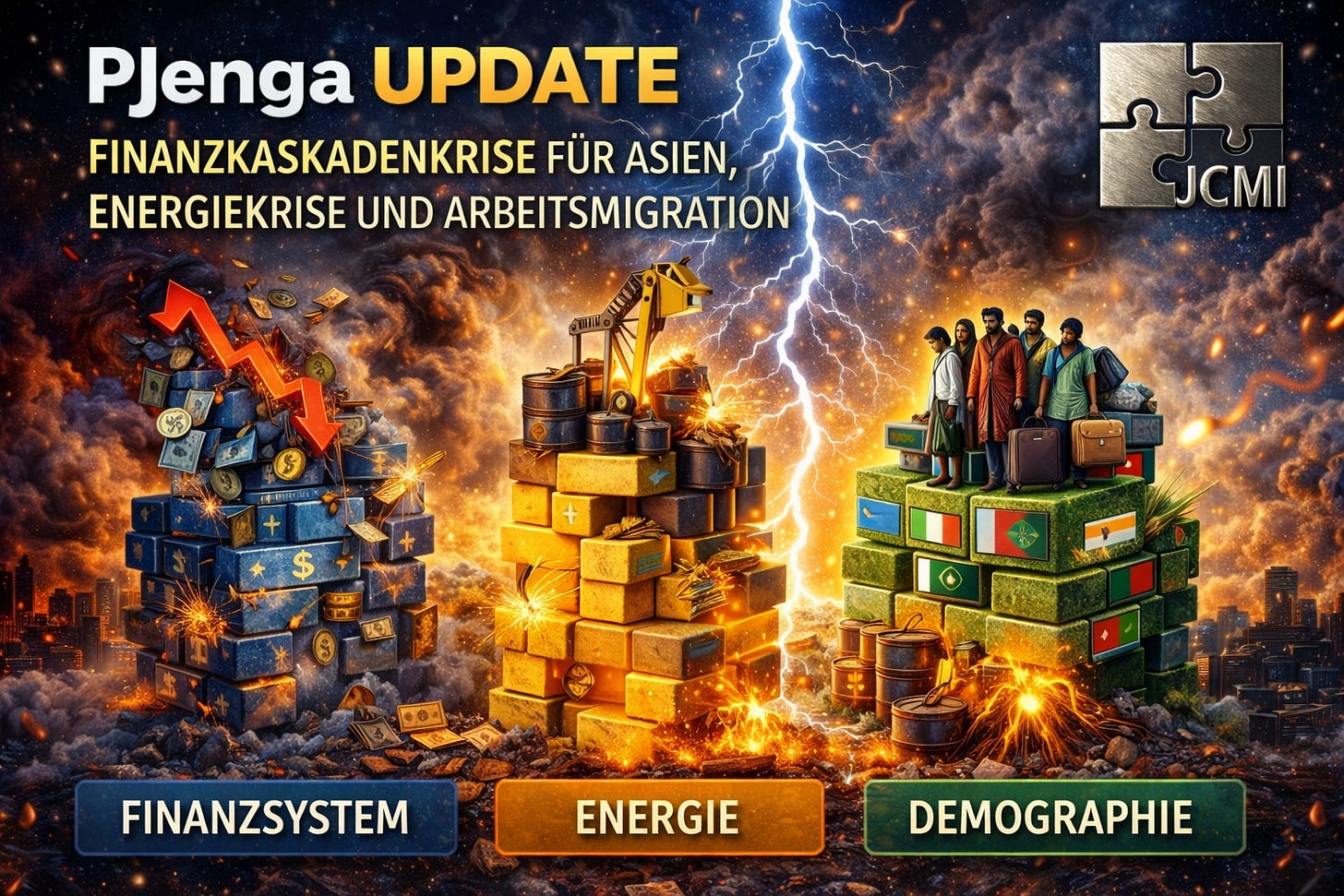 Wenn diese drei Türme gleichzeitig unter Druck geraten, steigt die Gefahr von Finanzkaskaden in Asien deutlich an. Nicht als plötzlicher Kollaps, sondern als schleichende Integritätskrise. Erst fehlen Überweisungen. Dann fehlt Liquidität. Dann fehlt Vertrauen. Und irgendwann fehlt politische Stabilität.