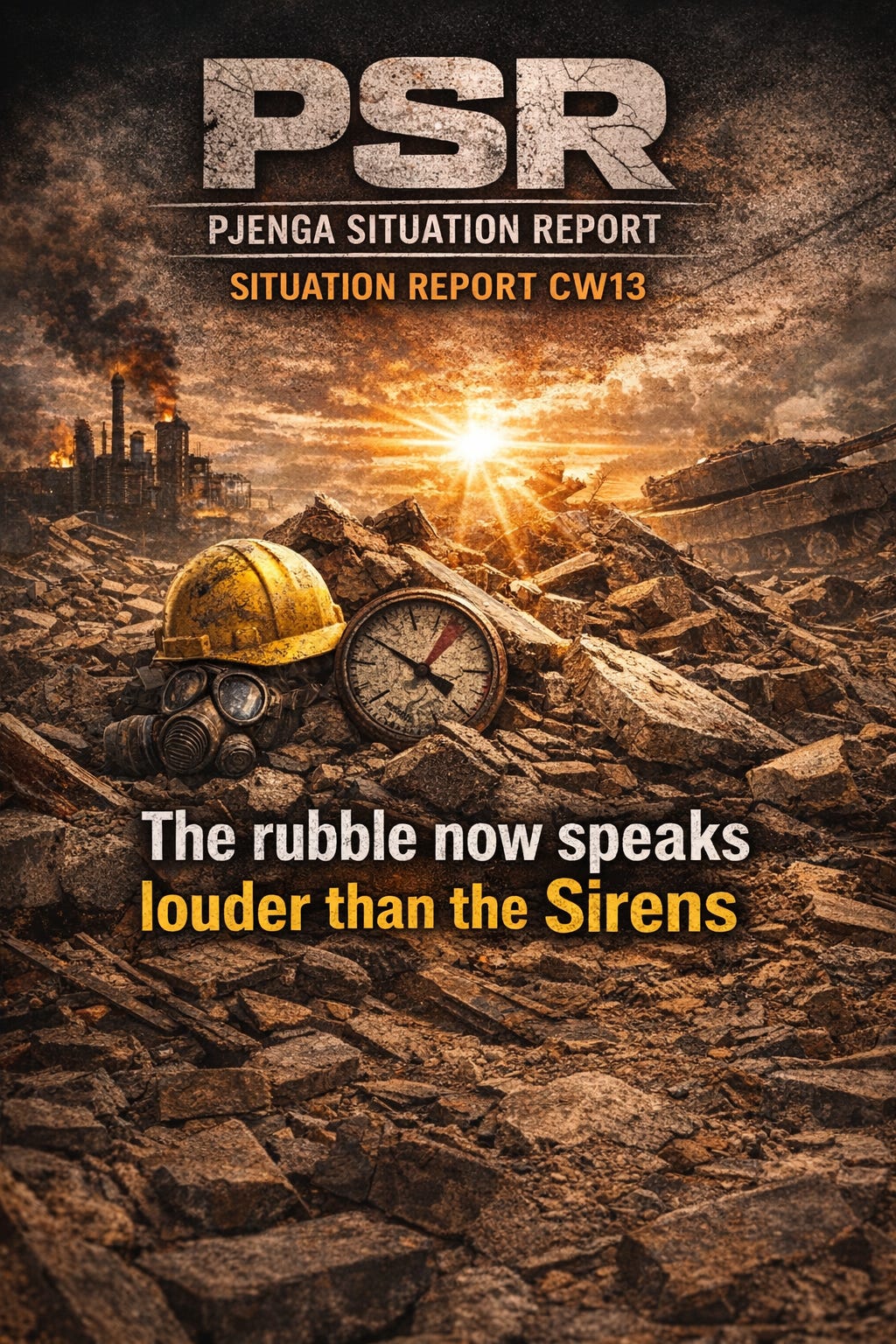 This week, the world no longer sounds merely like impact. It sounds like clearance, emergency mode, the dull noise of material that does not immediately snap under excessive weight, but begins to deform. CW12 was still the week in which the system kept running despite audible damage. CW13 is more revealing: the system is still running, but no longer as anything close to normal. It is running as a selective management of scarcity. That is the real shift.